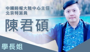世新大學新聞學系93屆學生 陳君碩 近況簡介 世新新聞系畢業後,取得政大東亞所碩士學歷。 曾任聯合報大陸新聞中心記者,駐點重慶;而後到旺旺中時媒體集團,派駐北京擔任特派員,採訪過馬習會、王張/夏張會、APE […]