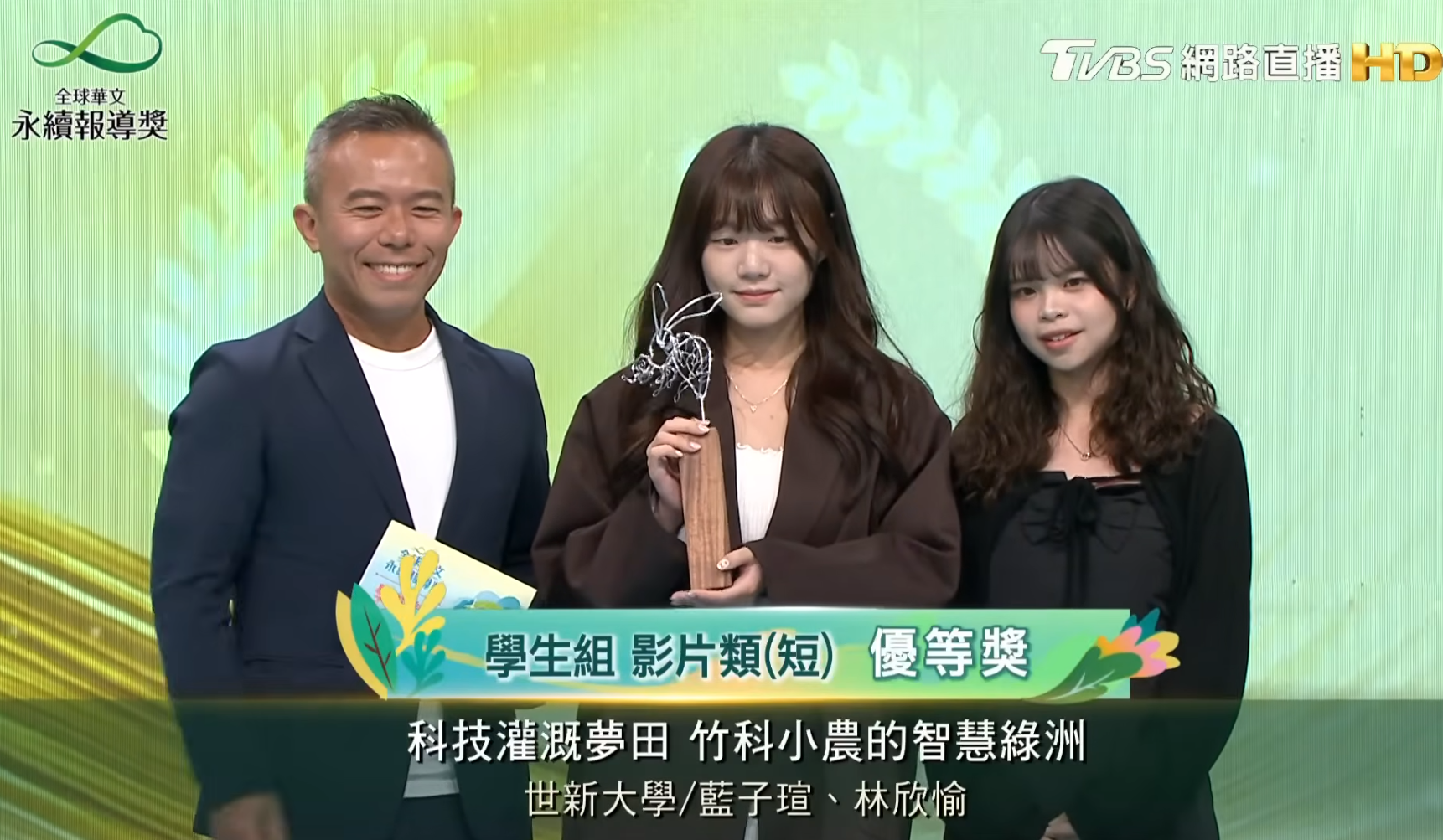 《科技灌溉夢田 竹科小農的智慧綠洲》榮獲學生組影片類(短)優等獎。圖片來源/全球華文永續報導獎粉絲專頁直播